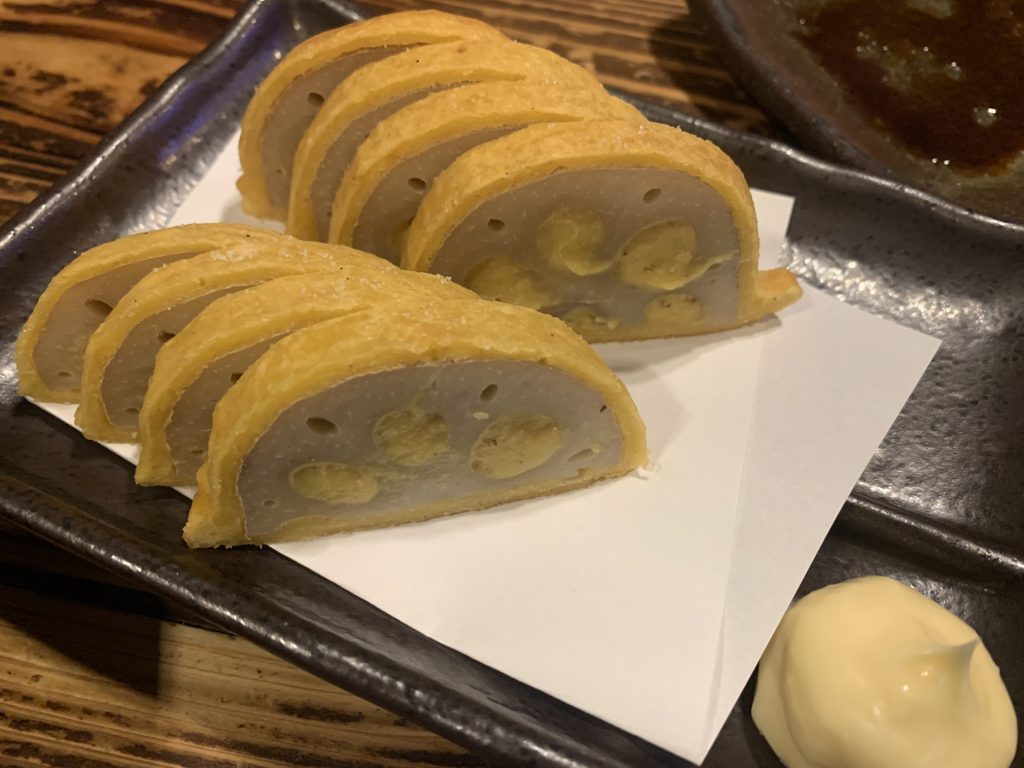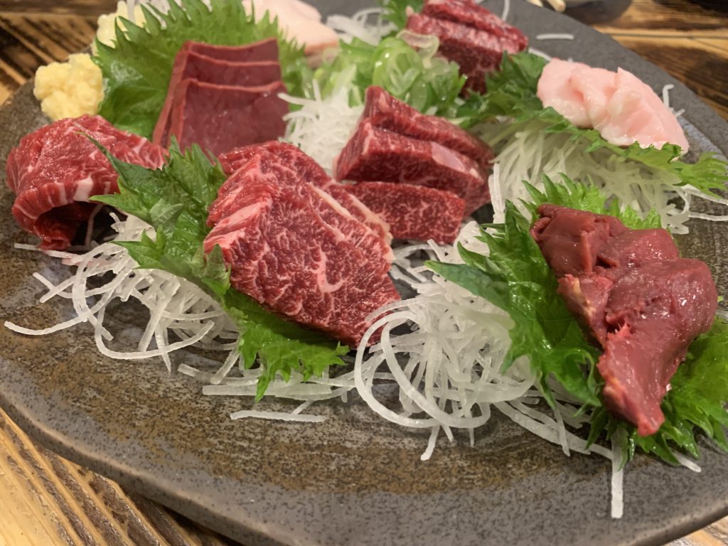 馬刺しと辛子蓮根食べました。